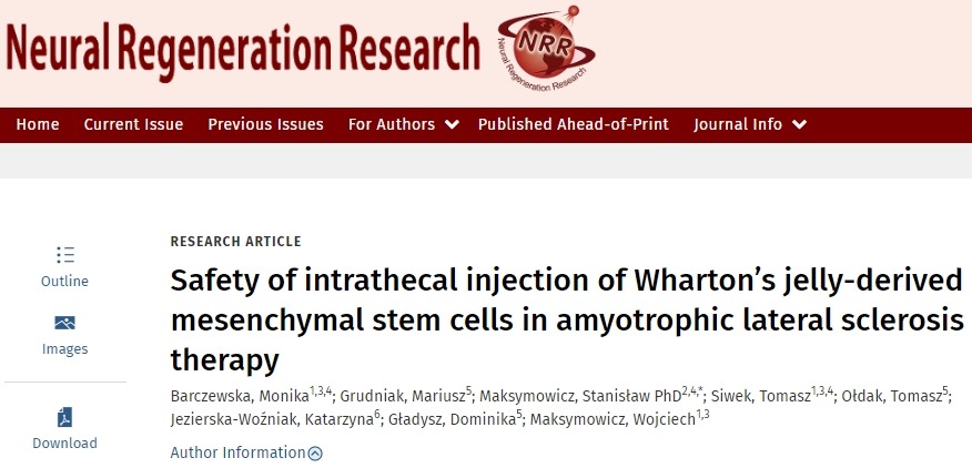 2019年,波蘭馬祖里大學(xué)醫(yī)學(xué)院神經(jīng)內(nèi)科對43名ALS患者的頸部、腰部和胸部每月注射兩次平均0.42×10^6WJ-MSC,未顯示任何不良反應(yīng),注射MSCs(占鞘內(nèi)和肌肉內(nèi)注射的組合)的患者的ALS功能評定量表-復(fù)蘇評分和用力肺活量降低的速度。證實(shí)了MSC治療的安全性和有效性。