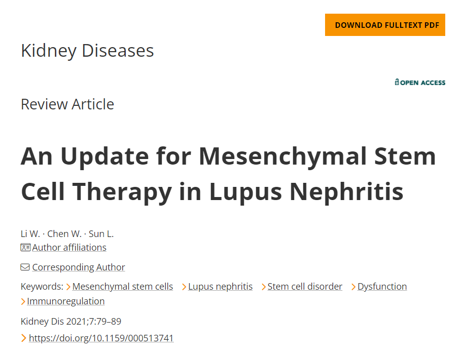 因此,仍然迫切需要新的療法。間充質干細胞 (MSCs) 對免疫反應具有有效的免疫抑制調節(jié)作用,靜脈內移植間充質干細胞可改善疾病癥狀,并已成為狼瘡腎炎的潛在有益療法。南京大學醫(yī)學院附屬鼓樓醫(yī)院風濕免疫科的目的是討論間充質干細胞在狼瘡腎炎動物模型和患者治療中的應用。