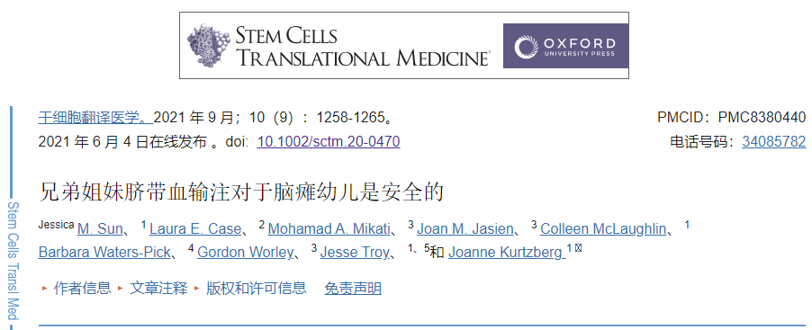 2021年,同一研究小組最近發(fā)表的一項(xiàng)開(kāi)放標(biāo)簽研究表明,HLA匹配或部分HLA匹配的兄弟姐妹臍帶血療法耐受性良好,并且可能有益。輸血沒(méi)有引起急性輸注反應(yīng),并且報(bào)告的不良事件與臍帶血輸注無(wú)關(guān)。輸注后6個(gè)月,外周血中未檢測(cè)到供體細(xì)胞。此外,沒(méi)有觀察到針對(duì)血小板、紅細(xì)胞或供體特異性HLA抗原的抗體形成。運(yùn)動(dòng)評(píng)估量表和標(biāo)準(zhǔn)分?jǐn)?shù)的增加。據(jù)報(bào)道,患者輸注后6個(gè)月。盡管上述臨床試驗(yàn)的結(jié)果令人鼓舞,對(duì)腦癱患者進(jìn)行臍帶血間充質(zhì)干細(xì)胞治療的臨床研究顯示出令人鼓舞的結(jié)果以及粗大運(yùn)動(dòng)技能的改善。