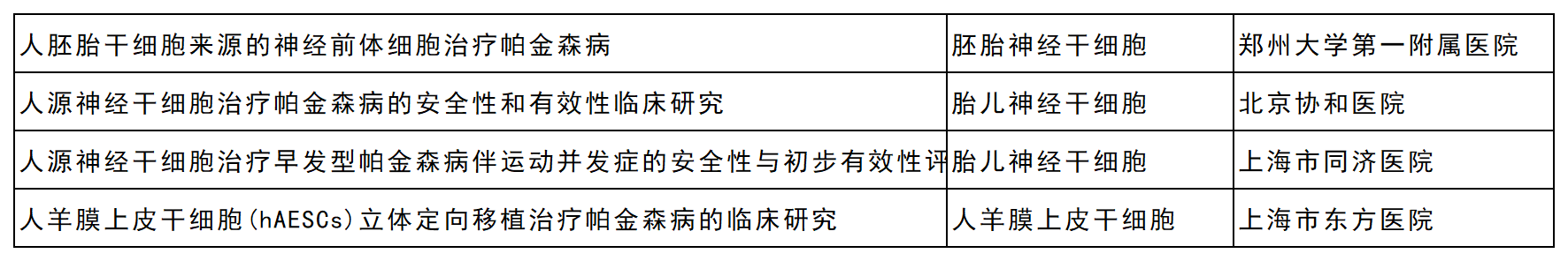 針對(duì)帕金森病和其他一些神經(jīng)退行性疾病患者的代表性干細(xì)胞試驗(yàn)和設(shè)計(jì)研究