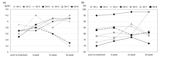 研究開展了一項多機構(gòu)臨床試驗(日本UMIN臨床試驗注冊中心:UMIN000022601),對7名非酒精性脂肪性肝炎或脂肪肝引起的肝硬化患者完成了治療和24周的隨訪。