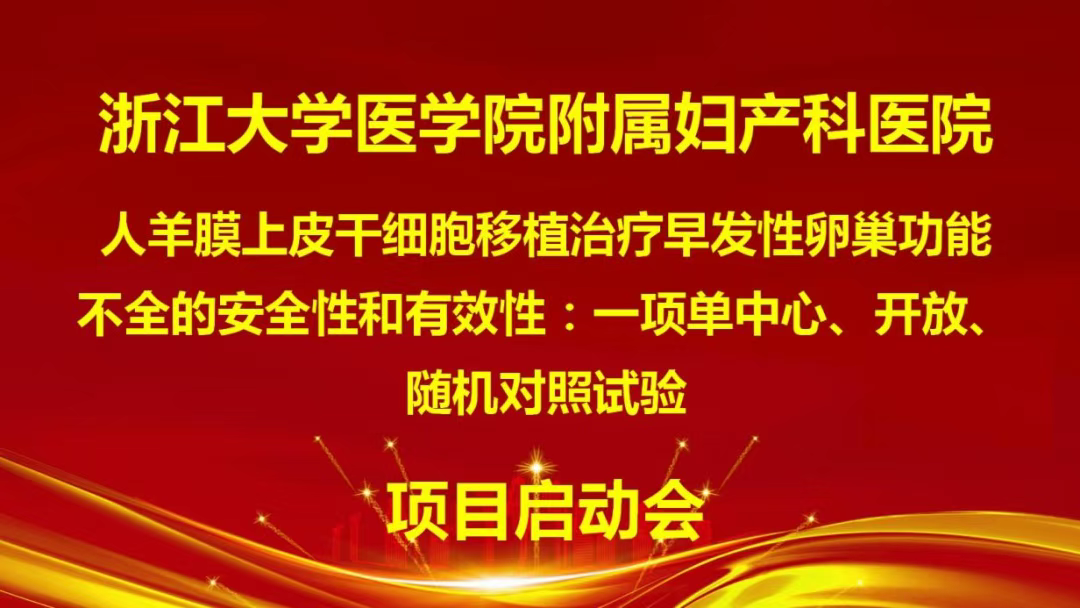 5月21日,《人羊膜上皮干細胞移植治療早發性卵巢功能不全的安全性和有效性:一項單中心、開放、隨機對照試驗》項目啟動會順利召開,標志著浙大婦院干細胞臨床研究開啟新篇章。該項目重點探索干細胞技術在生育力保護中的應用,旨在以科技創新護航女性健康。[6]