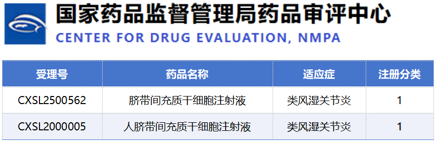 9月28日,國家藥監局的一則公示,為類風濕關節炎的細胞治療賽道再添一把火。新藥品CXSL2500562臍帶間充質干細胞注射液正式獲準進入臨床,劍指RA。[10]