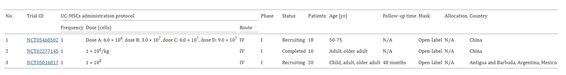 根據ClinicalTrials.gov網站,共有3項基于UC-MSC治療PF的臨床試驗注冊。(見圖7)
