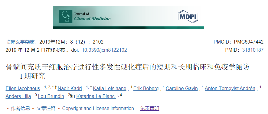 已經(jīng)進行了幾項在多發(fā)性硬化癥中使用間充質干細胞移植的臨床研究。大多數(shù)臨床試驗涉及數(shù)量有限的受試者,這些受試者使用鞘內或靜脈內輸注自體BM-MSC。