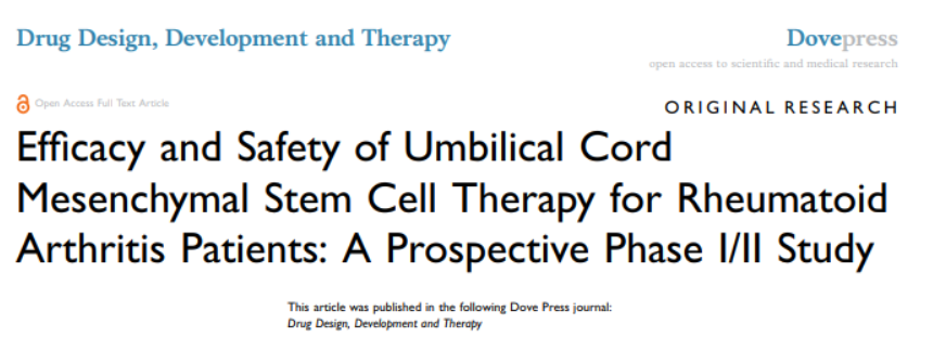 2019年,空軍第九八六醫院(西京醫院九八六醫院)、澳門大學健康科學學院研究團隊在行業期刊《Drug Des Devel Ther.》上發表了題為《Efficacy and Safety of Umbilical Cord Mesenchymal Stem Cell Therapy for Rheumatoid Arthritis Patients: A Prospective Phase I/II Study(臍帶間充質干細胞治療類風濕性關節炎患者的療效和安全性:一項前瞻性I/II期研究)的臨床研究成果。