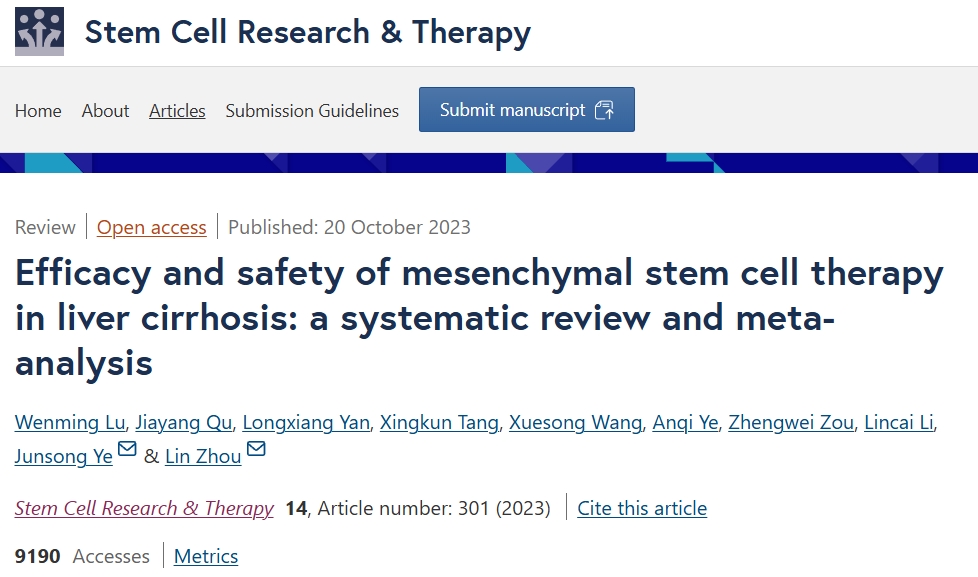 2023年,權威期刊雜志《干細胞研究與治療》發表了一項間充質干細胞治療肝硬化的療效和安全性:系統評價與薈萃分析的I-II期臨床試驗。