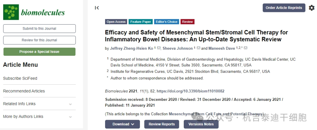 炎癥性腸病(IBD):2021年,期刊雜志《Biomolecules》生物分子發(fā)表了一篇間充質(zhì)干細(xì)胞/基質(zhì)細(xì)胞治療炎癥性腸病的療效和安全性:最新系統(tǒng)評(píng)價(jià)的文章,該綜述旨在介紹有關(guān)MSC療法在IBD中的安全性和有效性的最新研究。