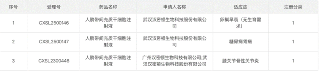 進展:2025年5月14日,國家藥監局藥品審評中心(CDE)公布,人臍帶間充質干細胞注射液(CXSL2500146)正式獲批開展治療卵巢早衰(無生育需求)的臨床試驗。這是我國首次明確針對卵巢早衰的臍帶干細胞藥物項目。