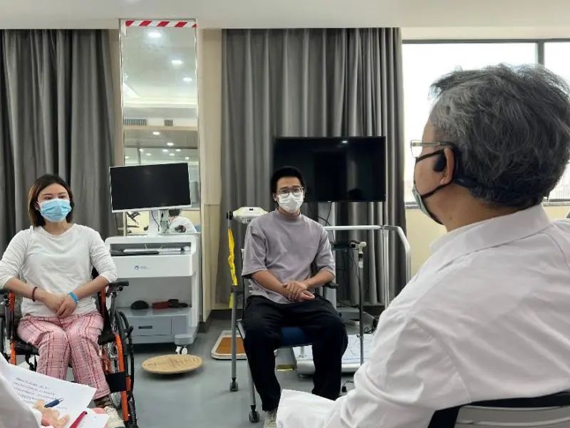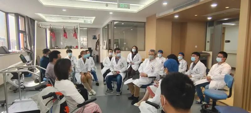 教育處黃蕾副處長從醫患溝通、心理疏導等方面對兩位受試者及家屬進行了詢問和指導,“如果碰到一個和您有類似遭遇的新患者,您會如何開導他”,這樣開放式的問題讓患者通過另一個視角理解和解讀自身的治療過程和對疾病診治的認識。病區護理部第榮靜護士長、項目Sub-PI吳周睿醫師、康復組趙麗娟醫師也從不同角度與趙先生和劉女士這2個月住院期間的治療體會進行交流。
