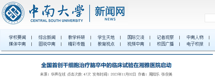 湘雅醫(yī)院:開展干細(xì)胞治療缺血性腦卒中偏癱后遺癥的臨床試驗(yàn)