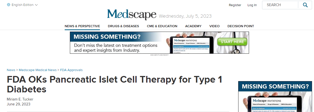 近日,FDA批準Lantidra,首個治療1型糖尿病的細胞療法。