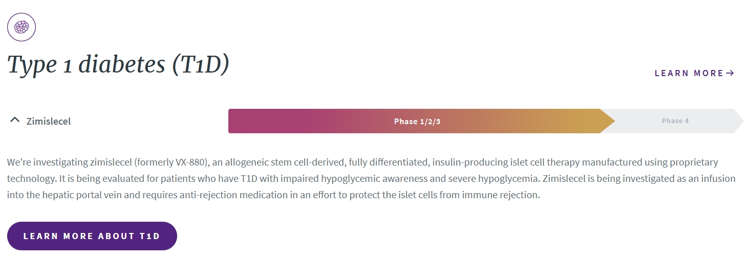 2025年3月28日,Vertex宣布1型糖尿病產品組合計劃更新。