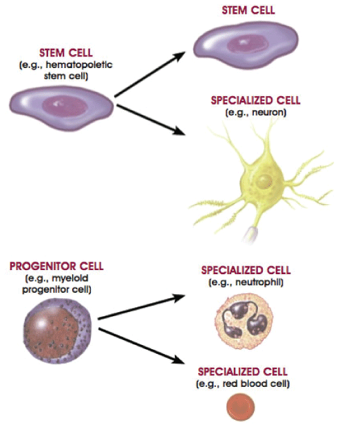祖細(xì)胞與干細(xì)胞非常相似。它們是生物細(xì)胞,并且像干細(xì)胞一樣,它們也具有分化成特定類型細(xì)胞的能力。然而,它們已經(jīng)比干細(xì)胞更具特異性,只能被推動分化成它的“目標(biāo)”細(xì)胞。然而,干細(xì)胞具有分化成許多不同類型細(xì)胞的能力,如圖1所示。表 1 詳細(xì)突出顯示了干細(xì)胞和祖細(xì)胞之間的比較。