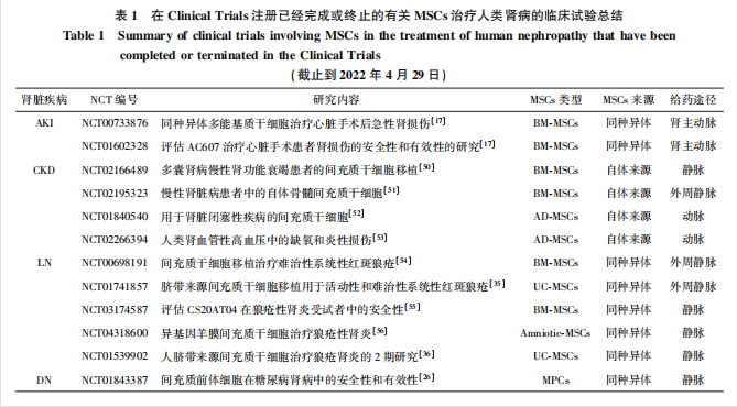 主要參考資料: 楊蘊釗,石美涵,周誠,等. 間充質干細胞在腎臟疾病治療中的應用進展[J]. 基礎醫學與臨床,2023,43(1):30-37. DOI:10.16352/j.issn.1001-6325.2023.01.0030.