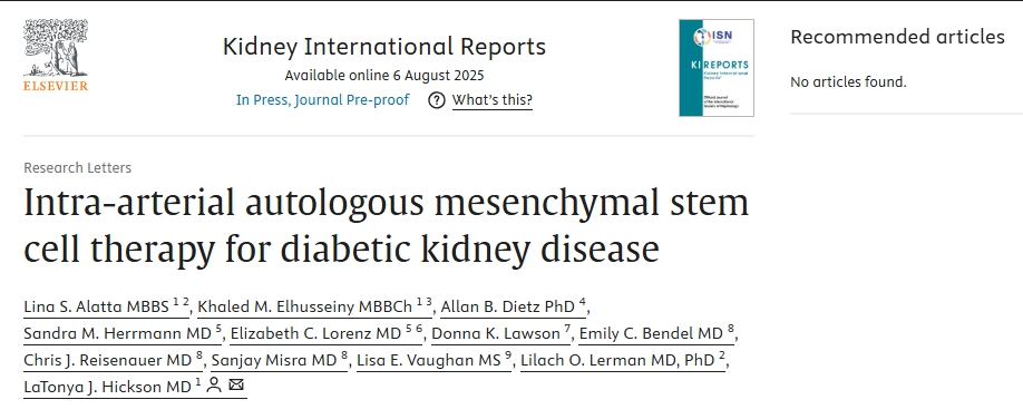 近日,美國梅奧診所在國際權(quán)威期刊雜志《腎臟國際報告》上發(fā)表了一項關(guān)于“動脈內(nèi)自體間充質(zhì)干細(xì)胞治療糖尿病腎病”臨床研究的文章[1]。