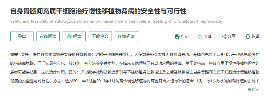 2014年8月6日,廣州醫科大學附屬第二醫院聯合東莞市人民醫院發表了一篇自身骨髓間充質干細胞治療慢性移植物腎病的安全性與可行性的文章。[1]