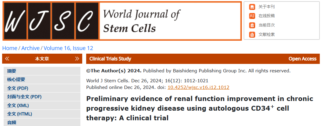 2024年12月,日本學者嘗試將自體CD34+細胞經腎動脈分次注射于慢性進行性腎病患者(eGFR15–28 mL/min/1.73m2),結果顯示月eGFR斜率由治療前?1.36±1.1升至治療后+0.22±0.71mL/min/1.73m2/月,腎內阻力指數與剪切波速度亦有顯著改善。盡管樣本量有限,該研究首次證實重復經腎動脈干細胞輸注在進展性腎病中的可行性與功能改善趨勢。