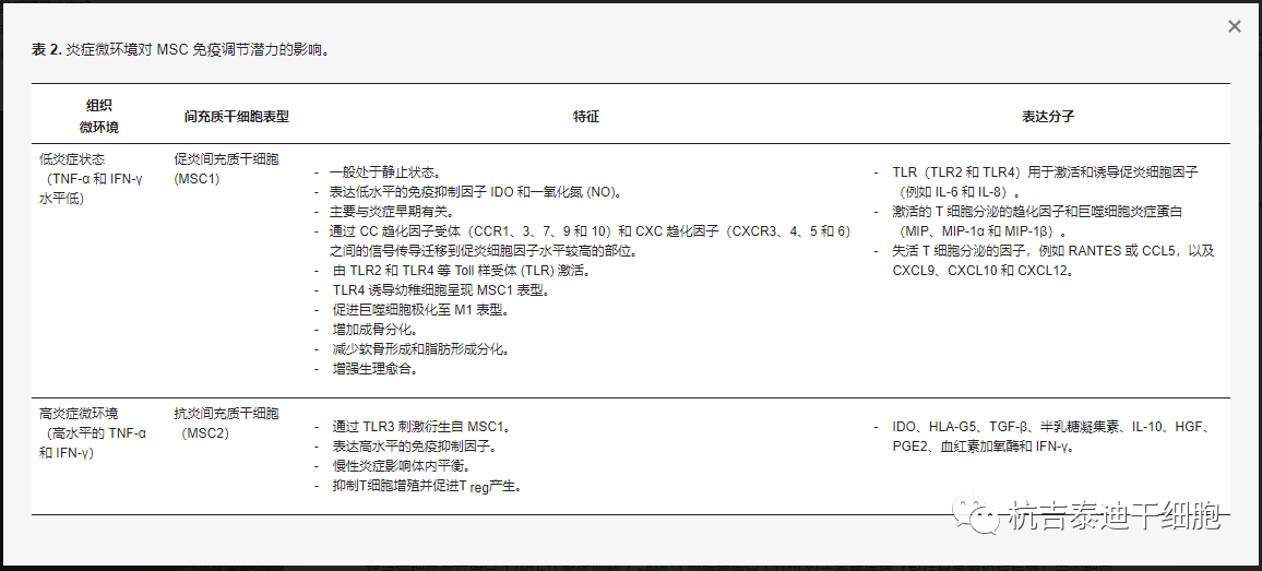 表2:炎癥微環境對MSC免疫調節潛力的影響。