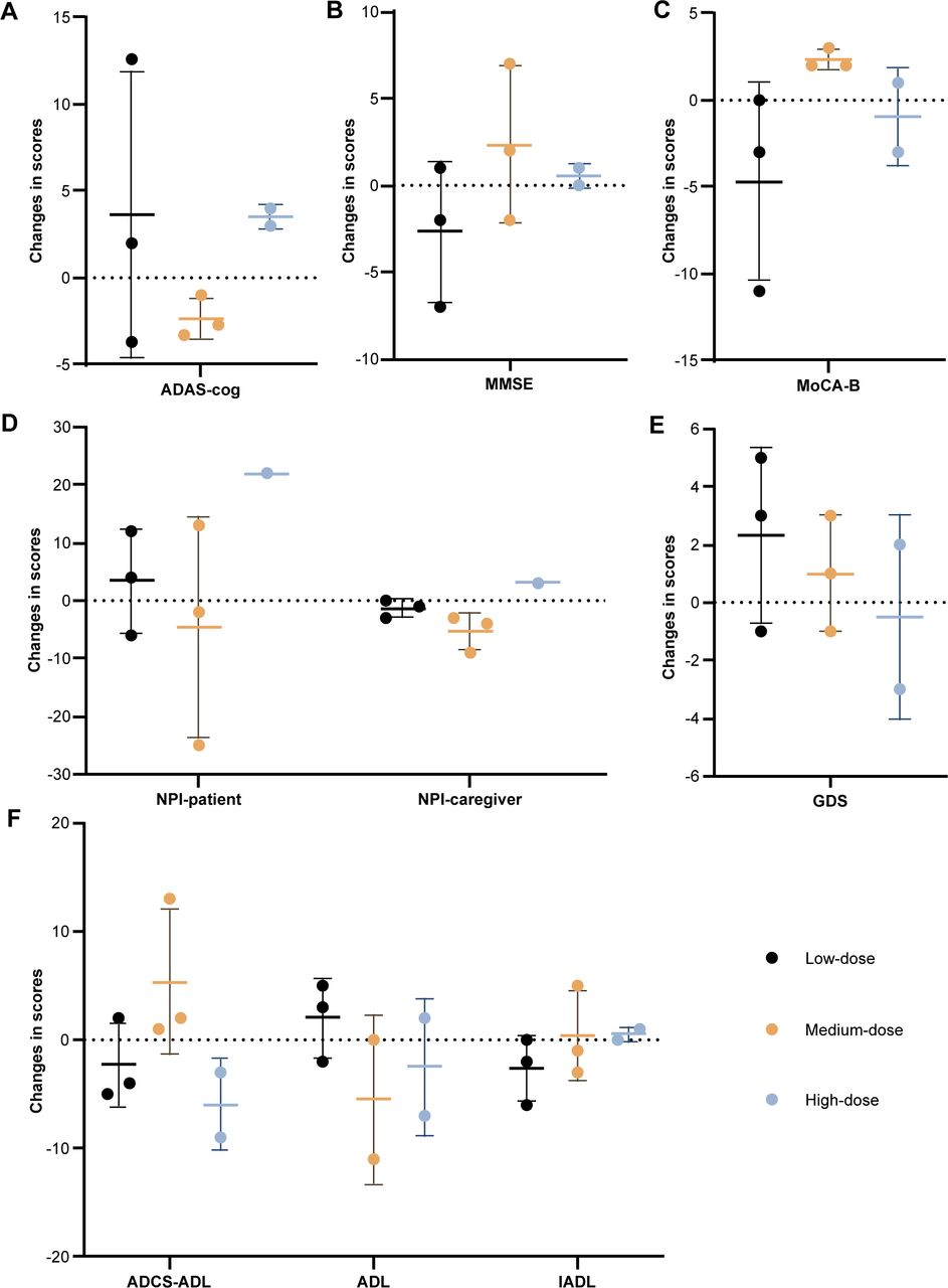 中等劑量組受試者阿爾茨海默病評估量表-認知部分(ADAS-cog)評分在第12周下降了2.33,蒙特利爾認知評估基礎量表(MoCA-B)評分增加了2.38,表明認知功能有所改善。