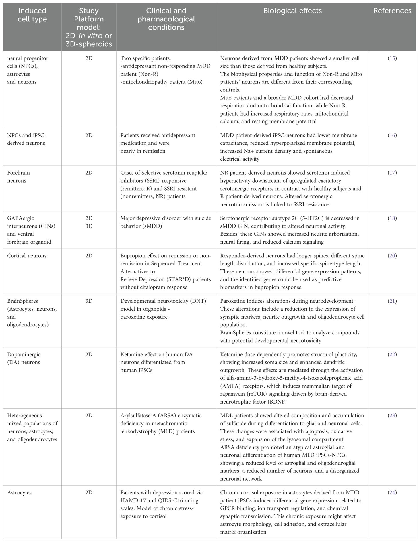 總的來(lái)說(shuō),這些報(bào)告表明,在來(lái)自被診斷為MDD的患者的各種類(lèi)型的神經(jīng)元中可以觀察到不同的形態(tài)模式、電生理特性以及差異基因和蛋白質(zhì)表達(dá)(表1;圖1)。這些發(fā)現(xiàn)凸顯了細(xì)胞重編程和使用iPSC在闡明MDD潛在病理生理學(xué)方面的重要作用。