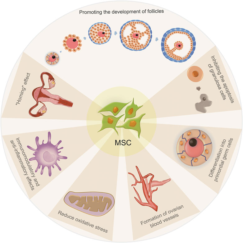 卵泡發生是卵巢功能的重要組成部分,因為它為生殖提供卵母細胞。大量基因/蛋白質已被確定與卵泡發育、生長、排卵和閉鎖過程有關。據報道,間充質干細胞移植可以增加生長因子、血管生成因子、多效性細胞因子、趨化細胞因子和細胞外基質蛋白的分泌,這些都是卵泡發生所必需的。