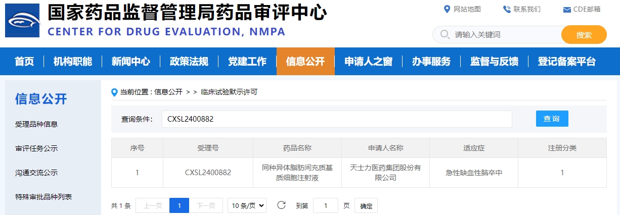 [1] 國家藥品監督管理局藥品審評中心 受理號:CXSL2400882