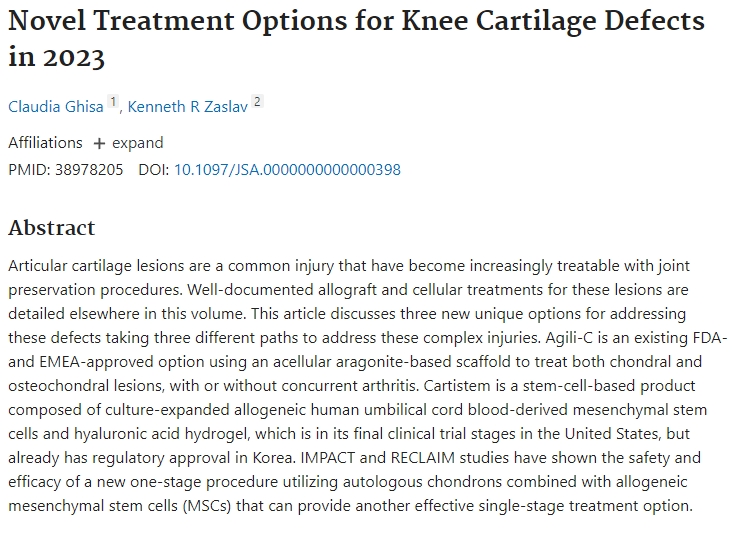 臨床結果表明,患者在接受Cartistem治療后,可出現透明樣軟骨形成?;颊叩膰H軟骨修復學會評分、VAS評分、西安大略和麥克馬斯特大學骨關節炎指數 (WOMAC) 評分和國際膝關節文獻委員會評分均有顯著改善。