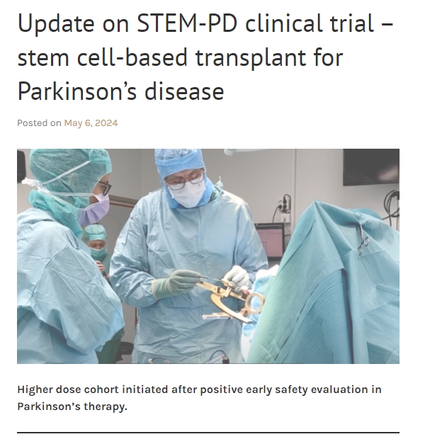 該項1期臨床試驗 (NCT06422208) 針對6名接受自體iPSC衍生多巴胺神經元移植治療帕金森病的患者,該試驗基于Penelope J. Hallett博士的工作。