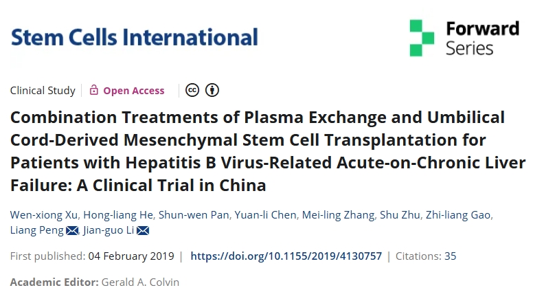在2019年,中山大學附屬第三醫院感染科進行了一項”血漿置換聯合臍帶間充質干細胞移植治療乙肝病毒相關慢加急性肝衰竭的臨床試驗。