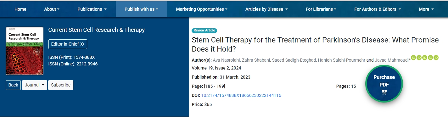 近日,國際期刊雜志《Current Stem Cell Research & Therapy》發(fā)表了一篇“Stem Cell Therapy for the Treatment of Parkinson’s Disease: What Promise Does it Hold?”的文章。