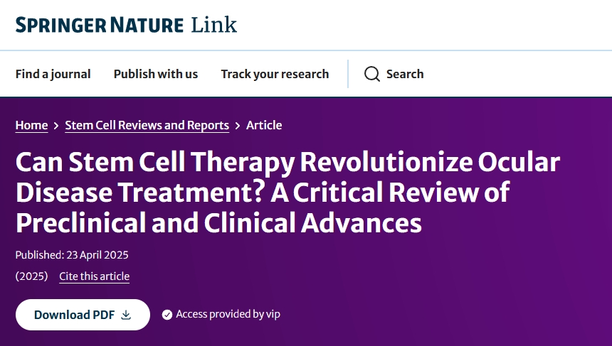 近日,著名期刊雜志“Stem Cell Reviews and Reports”(干細(xì)胞評(píng)論和報(bào)告)發(fā)表了一篇“Can Stem Cell Therapy Revolutionize Ocular Disease Treatment? A Critical Review of Preclinical and Clinical Advances”(干細(xì)胞療法能否徹底改變眼部疾病治療?臨床前及臨床進(jìn)展綜述)的文章。
