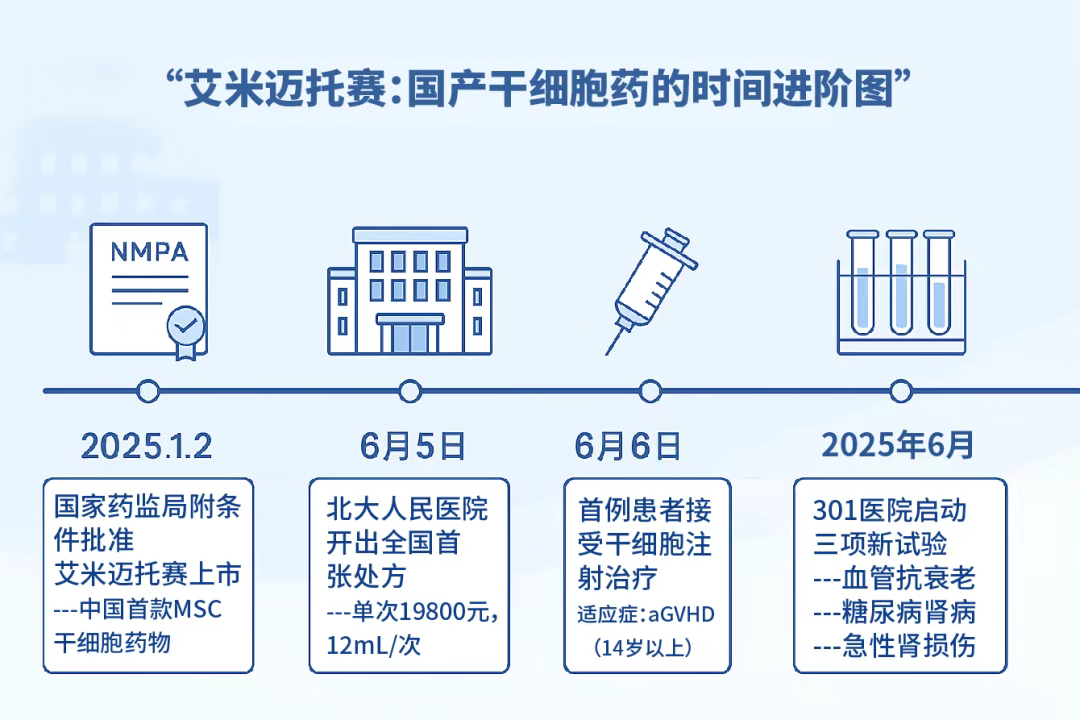 2025年1月2日,國家藥監局通過優先審評審批程序,附條件批準艾米邁托賽注射液上市。這款藥物核心成分是人臍帶間充質干細胞,符合嚴格的藥品生產質量管理規范(GMP)標準。