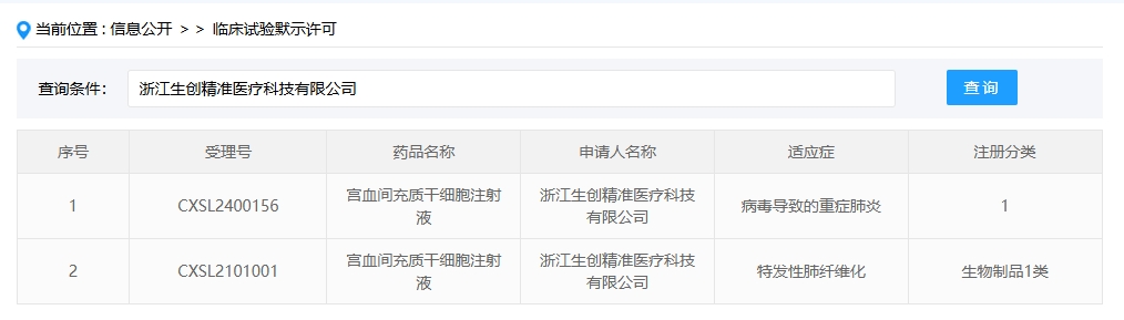 其中該款細胞注射液)獲得新藥臨床試驗默示許可,適應癥分別是:特發性肺纖維化,病毒導致的重癥肺炎。