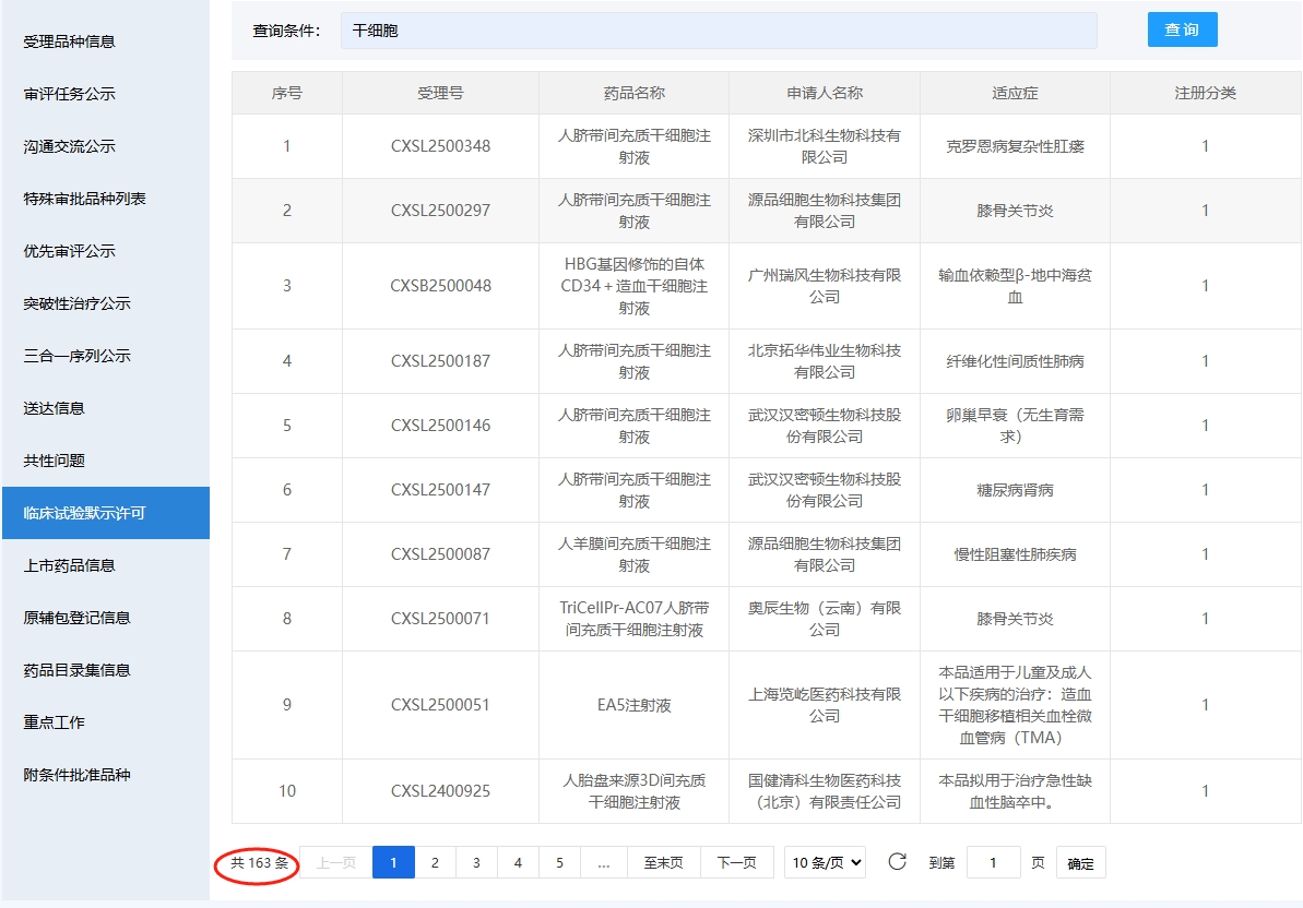 02 2025年6-7月受理的10項干細胞藥物臨床試驗申請詳細