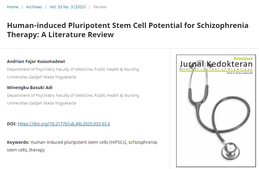 3月初,日惹加查馬達大學(xué)醫(yī)學(xué)系牽頭在《Jurnal Kedokteran Brawijaya》雜志上發(fā)表了一篇名為《人類誘導(dǎo)多能干細胞用于精神分裂癥治療的潛力:文獻綜述》的研究成果。[3]