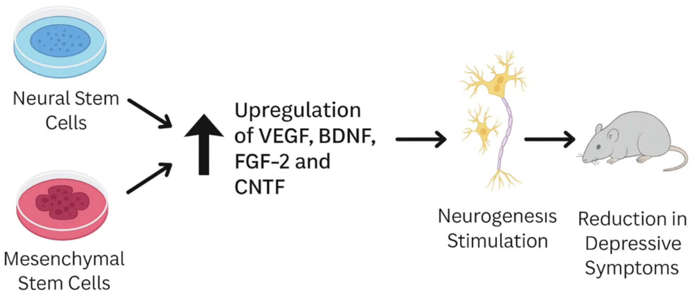臨床前研究表明,基于干細(xì)胞的療法,尤其是涉及間充質(zhì)干細(xì)胞 (MSC) 的療法,在治療抑郁癥方面擁有巨大的潛力。使用各種抑郁癥動物模型(包括慢性應(yīng)激模型和像Wistar-Kyoto大鼠這樣的難治性品系)進(jìn)行的研究表明,MSC以及細(xì)胞包被和細(xì)胞外囊泡 (EV) 等相關(guān)方法可以顯著減少抑郁樣行為。