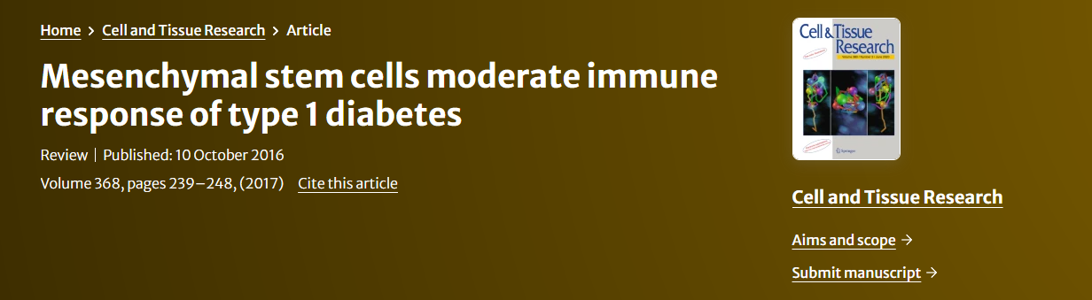 [1]Xv, J., Ming, Q., Wang, X.?et al.?Mesenchymal stem cells moderate immune response of type 1 diabetes.?Cell Tissue Res?368, 239–248 (2017). https://doi.org/10.1007/s00441-016-2499-2