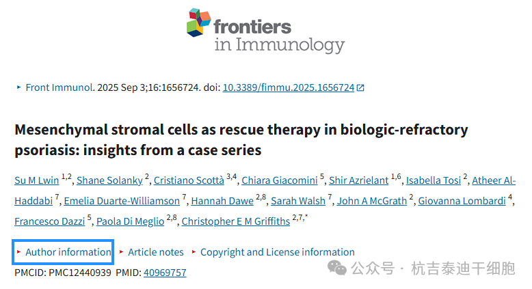2025年9月,英國倫敦國王學院醫院的一項臨床研究首次報告了異體臍帶來源間充質干細胞(UC-MSCs)用于治療三例重度、且對多種生物制劑均無應答的難治性銀屑病成人患者的情況