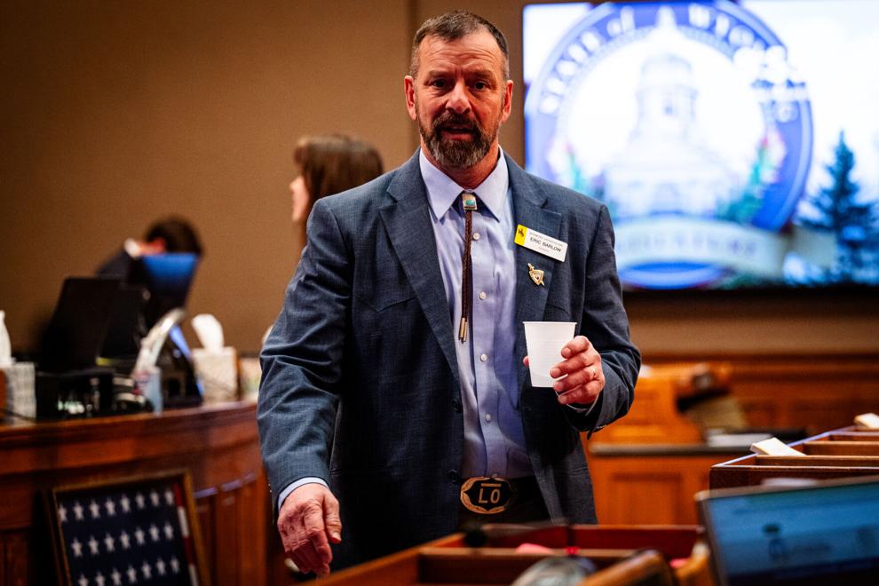 2月10日,在懷俄明州議會(huì)預(yù)算會(huì)議第二天召開之前,來自吉列的共和黨參議員埃里克·巴洛在州議會(huì)大廈走回他在參議院議事廳的座位。