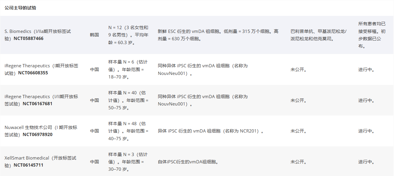 事實上,Bluerock Therapeutics/Bayer已于2025年9月啟動一項III期隨機、假手術對照、雙盲試驗。該試驗規模遠超此前的I/II期試驗,旨在更嚴格地評估hESC衍生vmDA祖細胞移植的療效,并期望在獲得積極結果后最終取得上市許可。同樣,日本試驗的更大規模后續研究也正在籌劃之中。