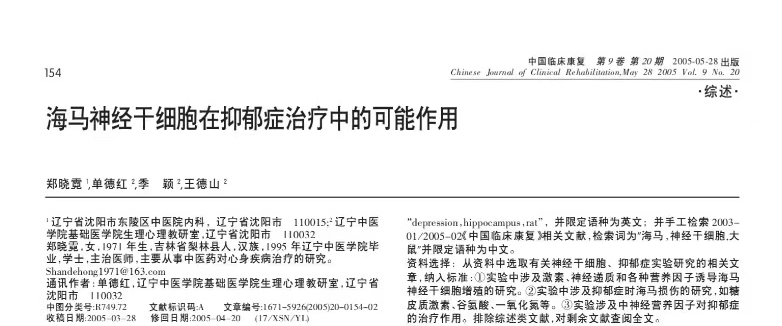 中國臨床康復第9卷第20期《海馬神經干細胞在抑郁癥治療中的可能作用》論文中提到:海馬損傷、神經干細胞增殖抑制是抑郁癥發病的關鍵環節,保護海馬神經元、修復海馬受損功能是抗抑郁的重要措施。