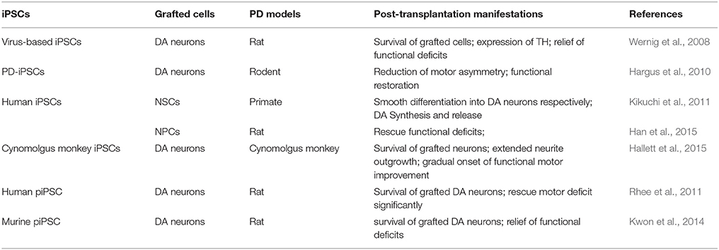 至于NSC,與ESC相比的一個(gè)潛在優(yōu)勢是,除了神經(jīng)譜系分化受限外,它們?cè)谝浦埠蟛灰仔纬赡[瘤和引起免疫排斥反應(yīng)。然而,神經(jīng)干細(xì)胞顯示出一些缺點(diǎn),如有限的分化能力和來源、揮之不去的倫理問題、帕金森癥狀的部分緩解。
