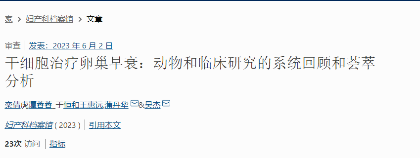 2023年6月,江蘇省人民醫院婦幼保健院南京醫科大學第一附屬醫院婦產科通過系統評價和薈萃分析評估干細胞療法卵巢早衰小鼠模型和卵巢早衰患者中的療效。