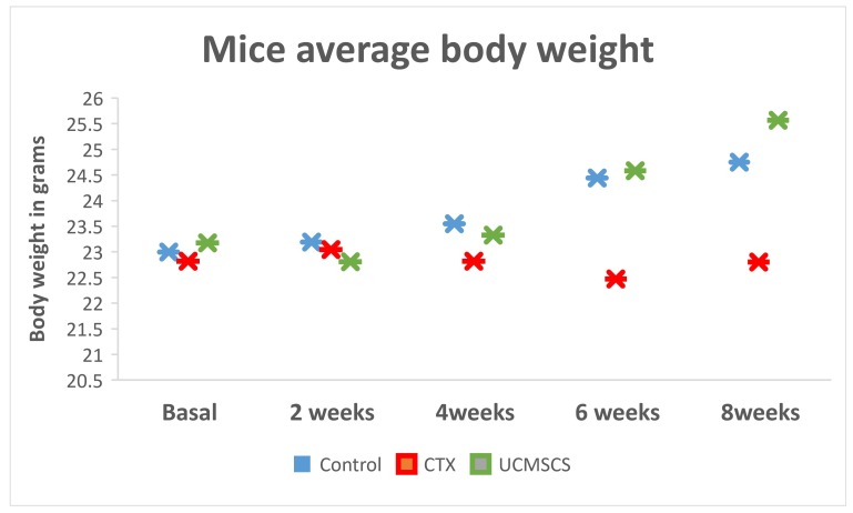 材料和方法:一項臨床前小鼠病例與載體對照隨機研究。三組中的每組都同時進行了兩個實驗。首先是證明UCMSCs恢復卵巢功能的能力。第二個是證明提高生育能力。總共36只小鼠被隨機分配;6只小鼠分成3組,每組進行2次實驗。第1組(對照組)、第2組(假化療)、第3組(干細胞)。