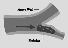 - 栓塞性中風(腦栓塞):在這種類型的中風中,身體某處的栓子(凝塊的一部分)脫落并進入大腦。凝塊堵塞血管,切斷血液供應。這種突然的阻塞稱為栓塞。