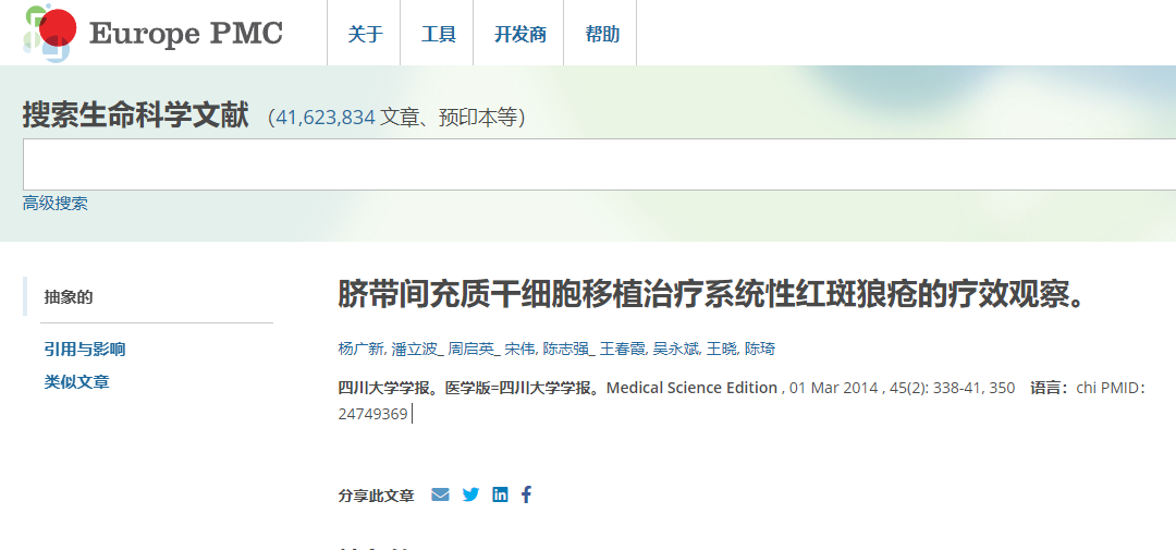 2014年3月25日,南京大學醫學院附屬鼓樓醫院在國際期刊《Arthritis Research and Treatment》上發布了一篇《臍帶間充質干細胞移植治療活動性和難治性系統性紅斑狼瘡:一項多中心臨床研究》的研究結果。