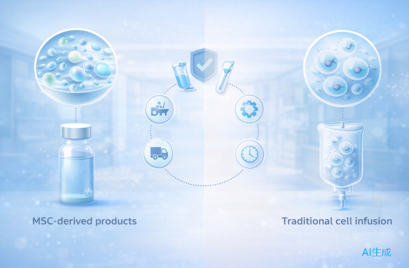 - MSC衍生物路線:交付的是“干細胞分泌或釋放的活性物質”,更接近一種成分可控的生物制劑,重點研究其特定組分在體內的劑量效應與安全性。