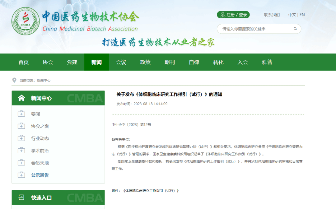 8月18日,中國(guó)醫(yī)藥生物技術(shù)協(xié)會(huì)發(fā)布《體細(xì)胞臨床研究工作指引(試行)》,以促進(jìn)醫(yī)療機(jī)構(gòu)研究者發(fā)起的體細(xì)胞臨床研究健康發(fā)展,加強(qiáng)對(duì)醫(yī)療機(jī)構(gòu)開(kāi)展體細(xì)胞臨床研究工作的指導(dǎo)。(來(lái)源:中國(guó)醫(yī)藥生物技術(shù)協(xié)會(huì)官網(wǎng))
