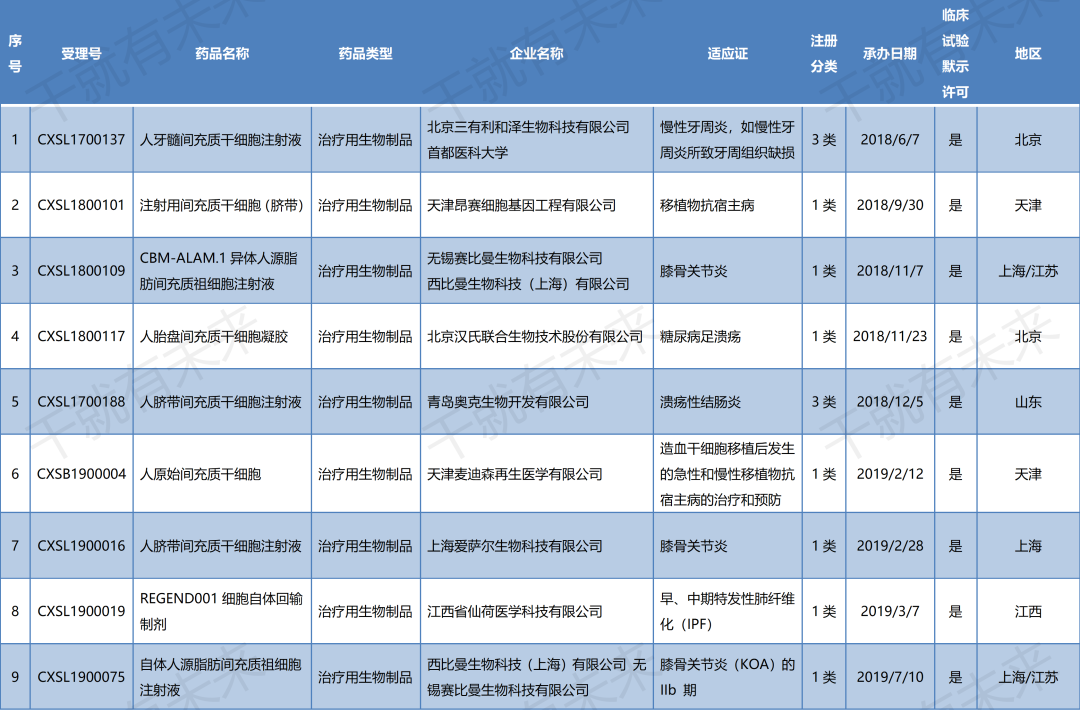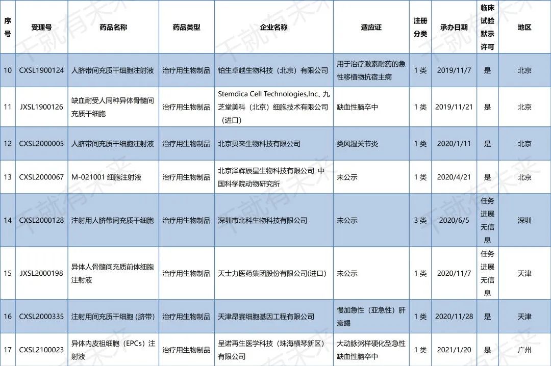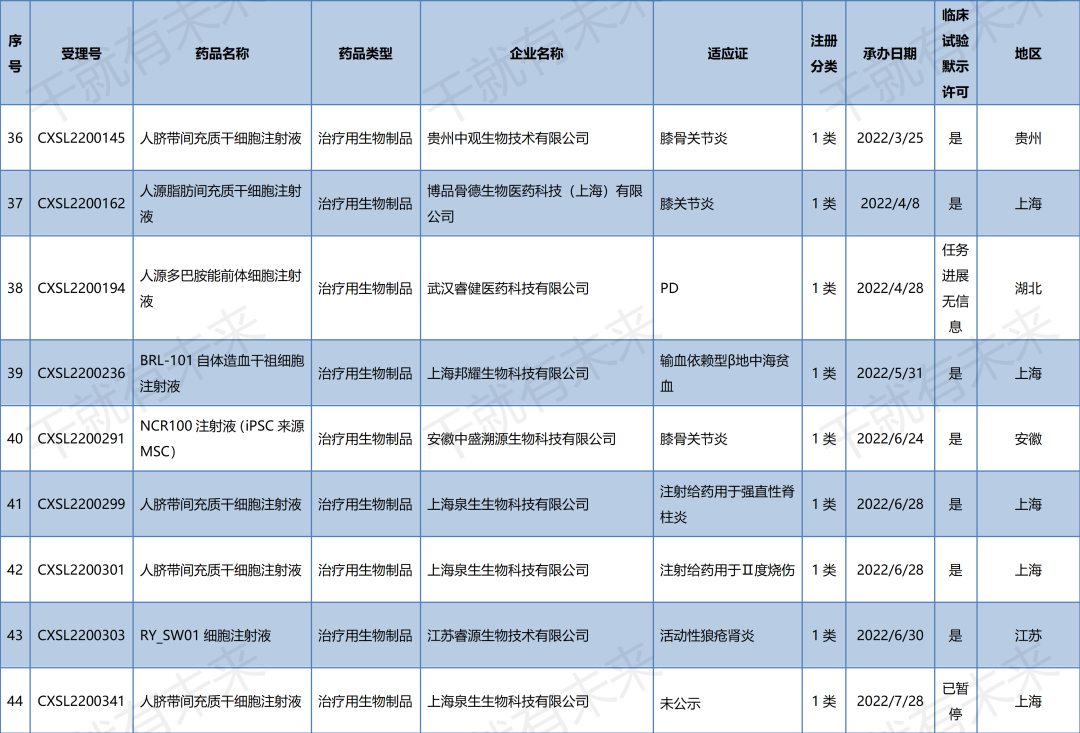 中國干細胞藥物注冊申報進展(2022年9月1日-11月30日)